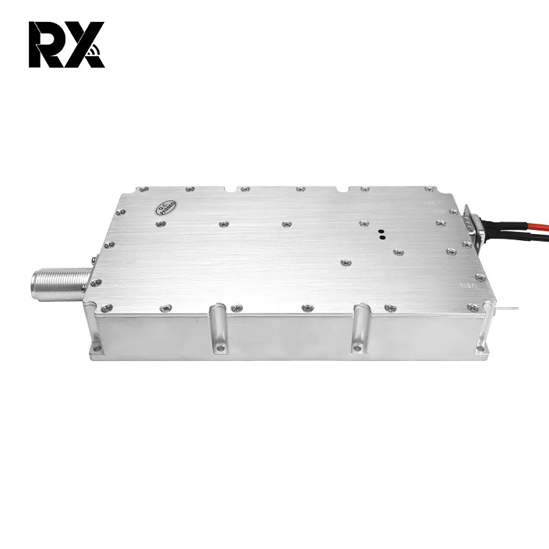 Nagtatampok ang module ng isang de-kalidad na haluang metal na aluminyo, isang compact na laki upang madaling mai-install. Ipinagmamalaki ng produkto ang mahusay na kakayahang umangkop sa kapaligiran, na may isang malawak na saklaw ng temperatura ng operating na -40 ° C hanggang +65 ° C, na natutugunan ang mga kinakailangan sa panginginig ng boses ng paggamit ng in -sasakyan. 200W High Power FPV Jammer Module 2100-2500MHz 28V DC Paggamit gamit ang isang N-Type na babaeng konektor ay nagsisiguro na maaasahan at pare-pareho ang paghahatid ng signal, maaari itong angkop para sa mga aplikasyon ng fpv jamming sa magkakaibang at kumplikadong mga sitwasyon, kabilang ang mga in-sasakyan at panlabas na aplikasyon.